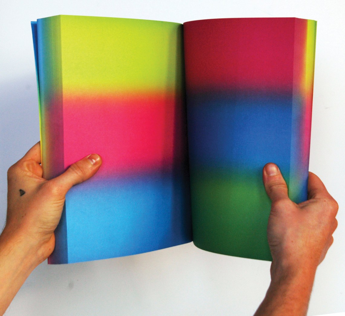 Recordings is a series of books that are the result of a physical interaction between the printer and the offset press. Colors are added to the press during printing following a predetermined “score.” The act of printing becomes an act of performance, and the book is the evidence of its occurrence. Recordings conflate books and sculpture. They use the machinery of mechanical reproduction to create visual records of specific, unrepeatable conditions of color and change.