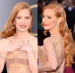 Jessica Chastain wearing Armani Prive. She called it her “Happy Birthday Mr. President,” look. She finishes her look with sexy starlet curls, bold earrings and bombshell lipstick.