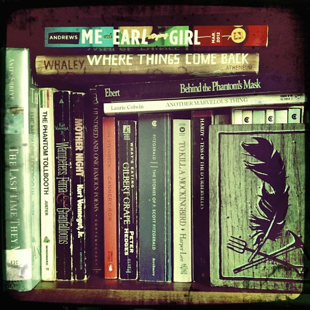 Something old, something new #bsmphotoaday #favoriteshelf @corey_whaley @_jesse_andrews_ and some art by #giveup