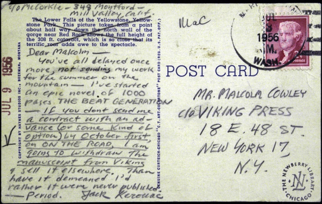 Jack Kerouac’s handwritten postcard – a publishing ultimatum sent to Malcom Cowley in 1956.