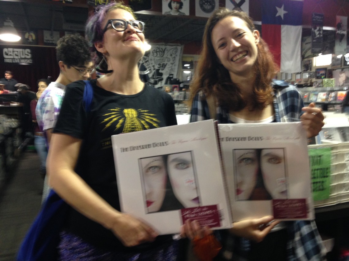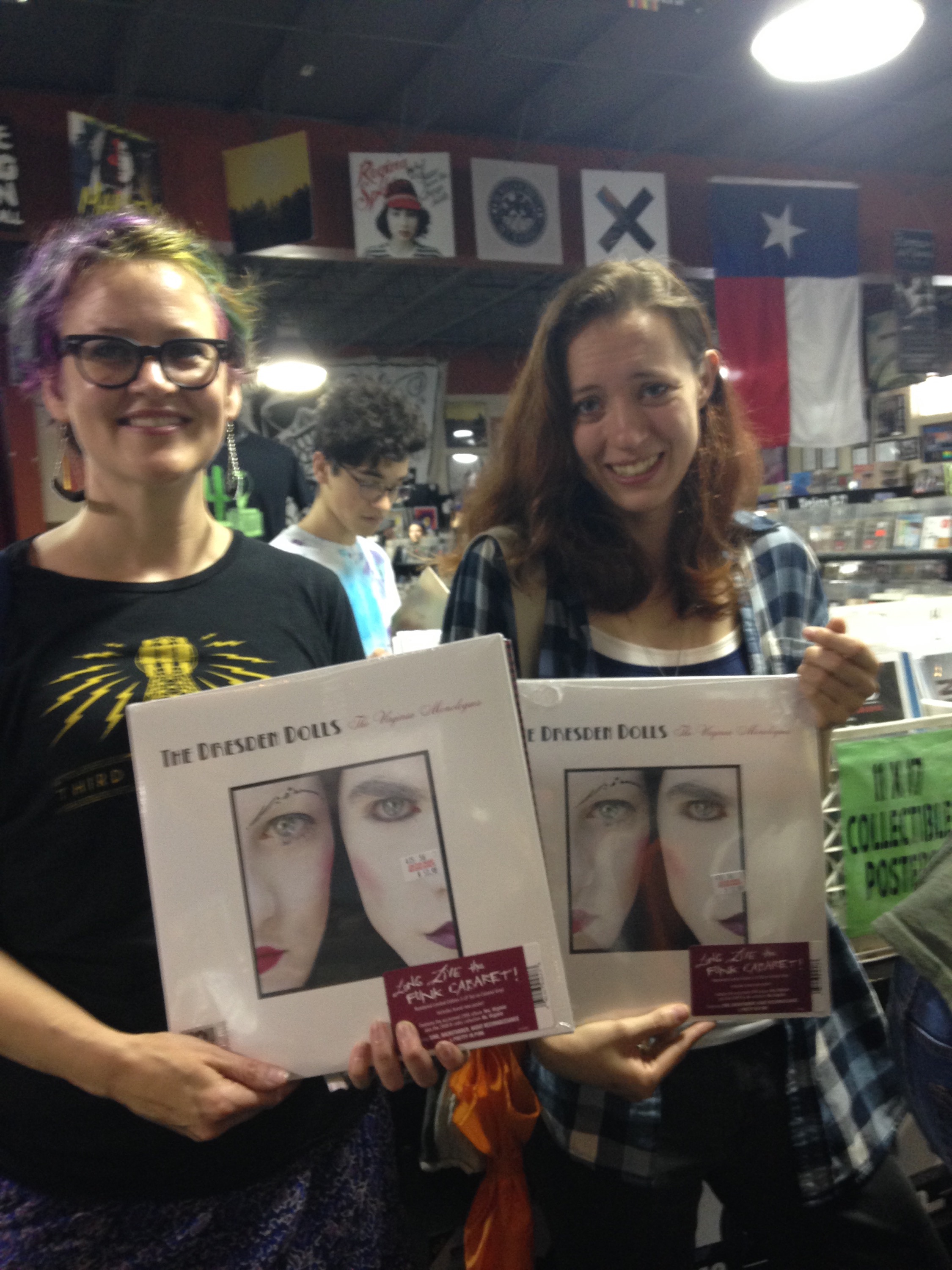 At 9am my daughter, her friend and I walked up to the already serpentine line at Cactus music in Houston. My number 1 goal being to come home with The Dresden Dolls 3 record set, The Virginia Monologues.