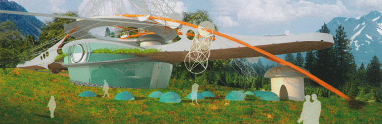 The film, Telos: The Fantastic World of Eugene Tssui, provides an in-depth profile of the artist. We are told that he was expelled from two universities for non-compliance. Presented with the truth that while he has dozens of completed designs, he has very few completed works, the film goer realizes that one of the most original living architects may never receive the accolades and profits that he deserves from his lifetime of work. (I never could figure out why books on the architect and his website list his name as having one S and the film lists his name as having two S’s).