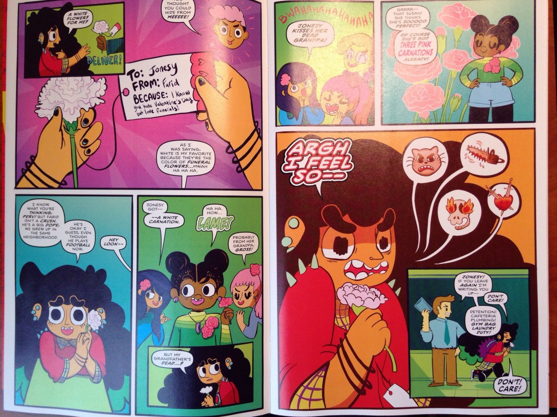 Jonesy is a refreshing retreat from the same old with a fresh, bold look and timely affectations. The book starts with us meeting Jonesy. She is willfully different in her dress and style yet longs to fit in. Nothing new there, right?