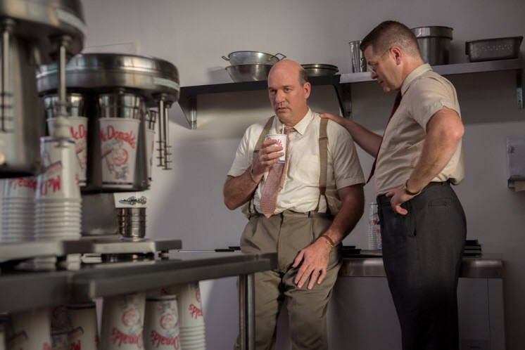 Nick Offerman as Dick McDonald (on the right), and John Caroll Lynch as Mac McDonald (on the left), represent “the good” in the parable. They have a lifetime history of working as a team. They share ideas and implement them together always striving to be better. Their relationship is enviable, genuine and strong. They obviously give each other the right push to achieve bigger and better things while supporting each other. Both performances are stand out good. The actors possess a seemingly innate chemistry and fill out their characters in a way that is missing from Keaton and the rest of the cast.