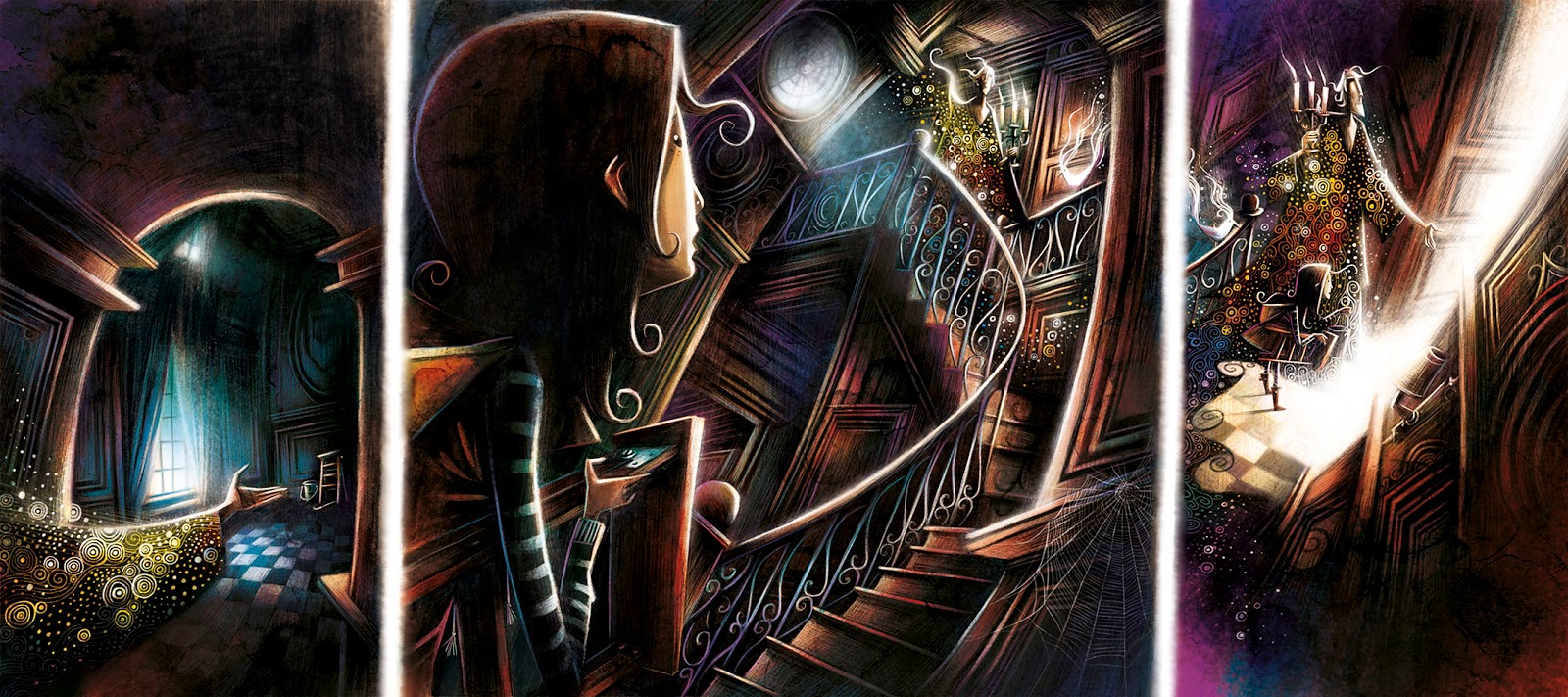 Boat of Dreams is a wordless picture book with a story of whimsy, longing and familial connections told through the monochromatic images by Rogério Coelho. An elderly man gazes out to sea and discovers a message in a bottle. The discovery inspires him to draw an elaborate flying machine which he sends to his grandson. His grandson is illustrated in color and the story alternates between their correspondences. Light, line, shadows, and space are all used in unexpected and charming ways in Coelho’s illustrations.